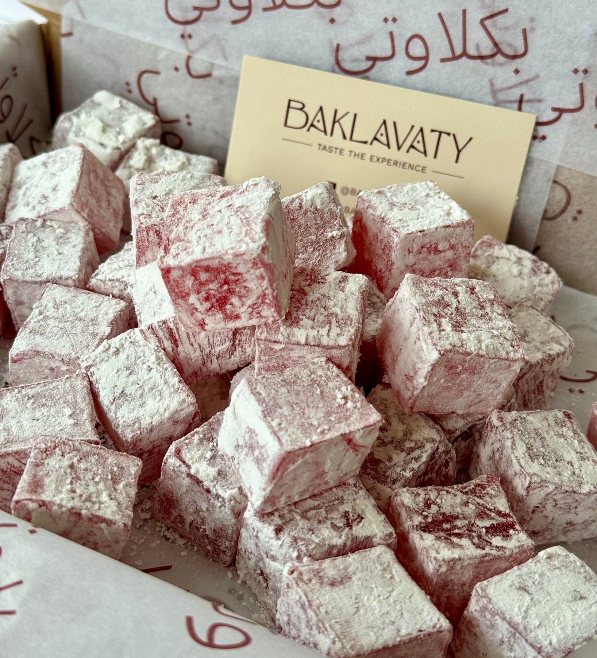 Experience the enchanting allure of our Rose Turkish Delight. Crafted with care and traditional methods, each bite evokes visions of blooming gardens with its velvety texture and delicate rose flavor. Perfect for moments of indulgence or as a delightful gift, experience the magic of this Middle Eastern treat today.